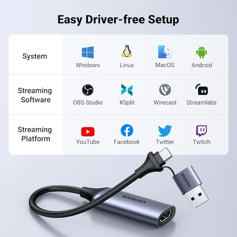 مبدل HDMI به USB/USB C یوگرین مدل CM489-40189 با این دستگاه به راحتی میتوانید لپ تاپ و یا دستگاه های هوشمند خود را با یک کابل HDMI به یک نمایشگر بزرگتر متصل کنید و تصویر خود را با دوستان و خانواده خود به اشتراک بگذارید. قابل استفاده در :Windows 8.1/ 10/macOS/Linux/Android 5.0 and higher تلویزیون، تلفن همراه، Dslr، رایانه شخصی، دوربین، صفحه نمایش و …